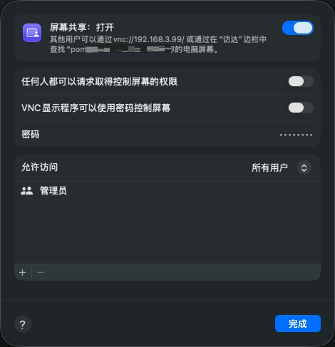 macOS 内置的屏幕共享功能简单易用,基于标准 VNC 协议,兼容各大平台的 VNC 客户端。按照本文步骤,你可以快速启用并安全地使用远程桌面功能。